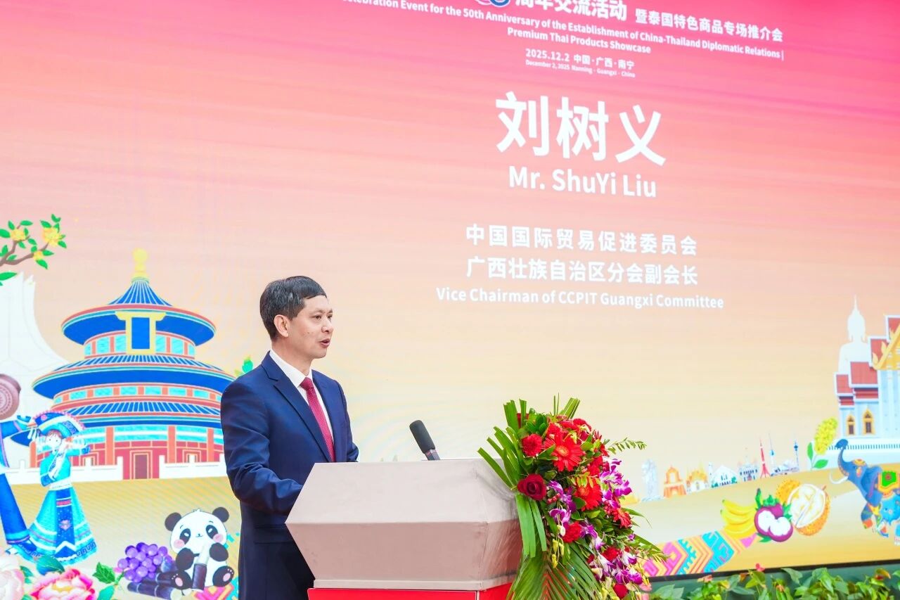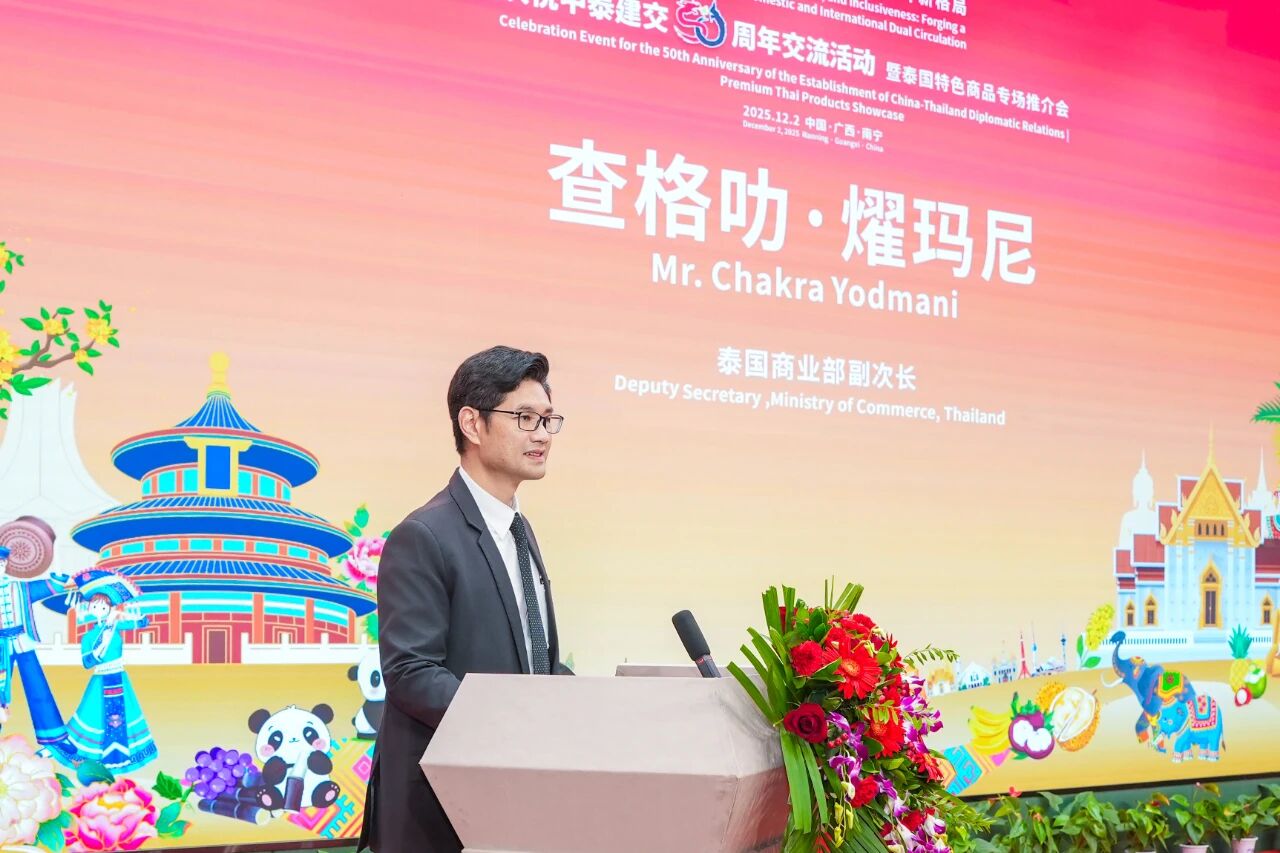 12月2日,“親誠(chéng)惠容·共拓內(nèi)外貿(mào)雙循環(huán)新格局——慶祝中泰建交50周年交流活動(dòng)暨泰國(guó)特色商品專場(chǎng)推介會(huì)”在中國(guó)—東盟特色商品匯聚中心隆重舉辦。本次活動(dòng)由泰國(guó)商業(yè)部、泰國(guó)商業(yè)部國(guó)際貿(mào)易促進(jìn)司、中國(guó)國(guó)際貿(mào)易促進(jìn)委員會(huì)廣西壯族自治區(qū)分會(huì)、中國(guó)—東盟商務(wù)理事會(huì)聯(lián)席秘書(shū)處、中國(guó)—東盟特色商品匯聚中心(簡(jiǎn)稱“匯聚中心”)聯(lián)合主辦,中國(guó)國(guó)際商會(huì)廣西商會(huì)、中國(guó)檢驗(yàn)認(rèn)證集團(tuán)廣西有限公司、廣西達(dá)譯科技有限公司、邁越科技股份有限公司、方圓標(biāo)志認(rèn)證集團(tuán)廣西有限公司作為支持單位參與此次活動(dòng)。