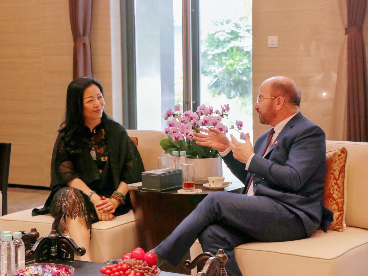 查看詳情5月9日下午,馬來(lái)西亞駐南寧總領(lǐng)事館總領(lǐng)事阿哈默·法蒂爾·伊斯邁爾、馬來(lái)西亞駐廣州總領(lǐng)事館商務(wù)領(lǐng)事哈里斯一行到訪(fǎng)中國—東盟特色商品匯聚中心,實(shí)地調研項目的發(fā)展情況。中國—東盟特色商品匯聚中心董事長(cháng)趙海燕熱情接待領(lǐng)事們一行。