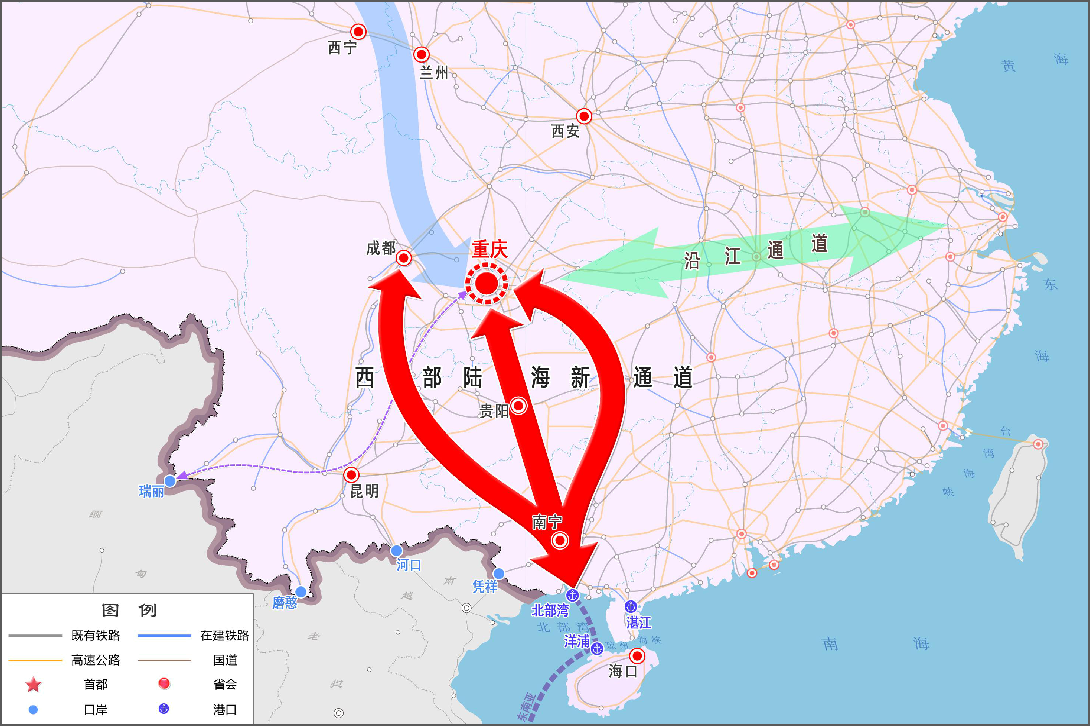 西部陸海新通道位于我們西部地區腹地,北街絲綢之路經(jīng)濟帶,南連21世紀海上絲綢之路,協(xié)同銜接長(cháng)江經(jīng)濟帶,在區域協(xié)調發(fā)展格局中具有重要戰略地位。