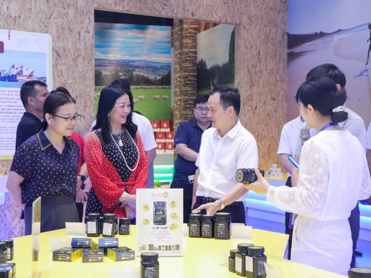 在參觀(guān)廣西館的過(guò)程中,調研組對展現壯鄉風(fēng)情與各類(lèi)特色“桂品”表現出了濃厚的興趣,同時(shí)介紹欽州也有非常多的特色好物。此次到訪(fǎng)匯聚中心,調研組做了充分的準備,企業(yè)家們也帶著(zhù)優(yōu)質(zhì)的產(chǎn)品與滿(mǎn)滿(mǎn)的誠意而來(lái)。
