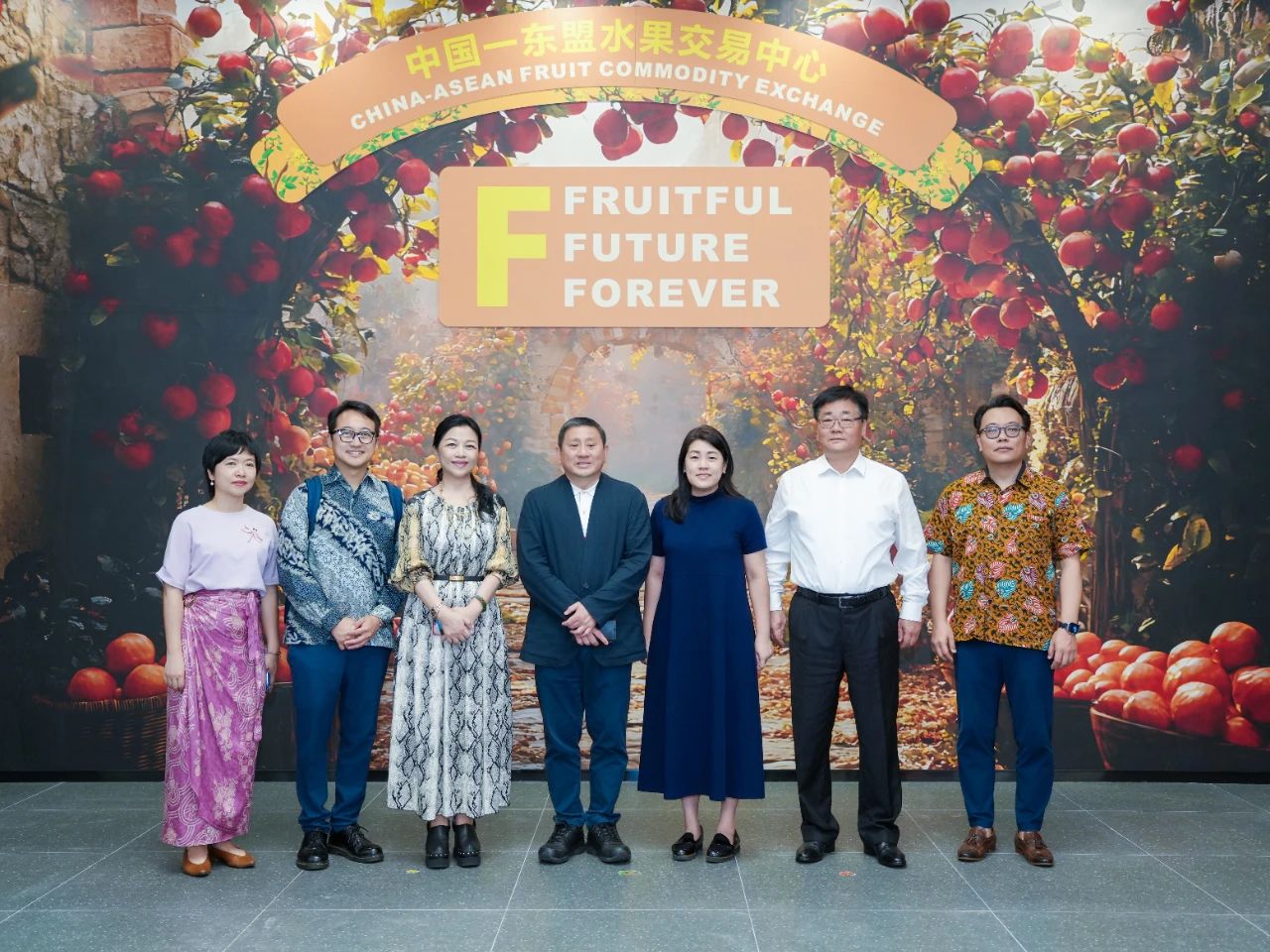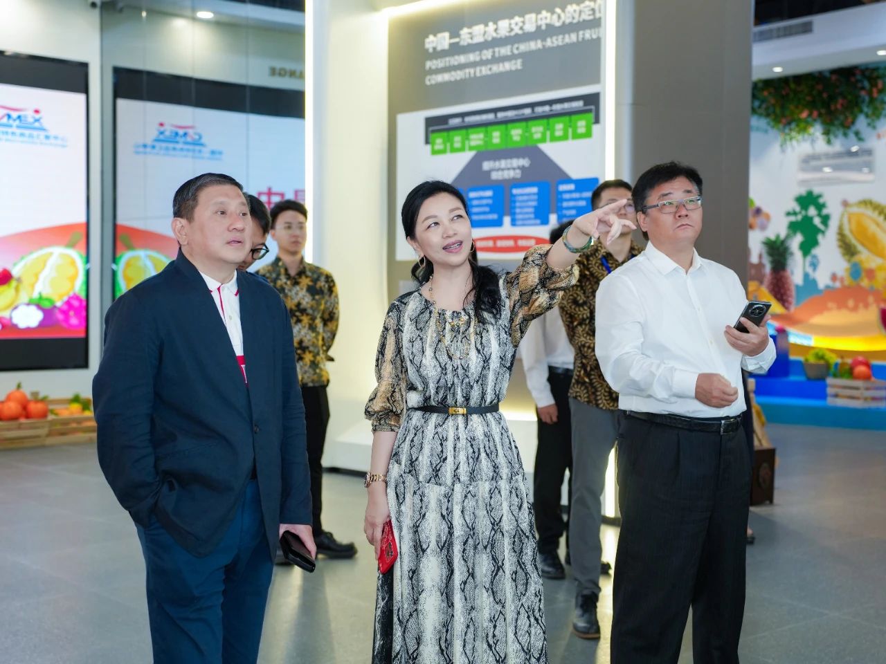 考察組還走進(jìn)水果交易中心展廳,就中國與東盟水果貿易情況進(jìn)行了溝通交流。陳海泉大使表示,此次到訪(fǎng)認識到了中國南北方水果的差異,也了解了廣西作為中國水果第一大省區的獨特優(yōu)勢,在廣西建設水果交易中心大有可為。新加坡雖不是水果主要生產(chǎn)國,但依托世界重要的轉口港基礎設施及先進(jìn)的冷鏈物流體系,可在水果精深加工、先進(jìn)保鮮技術(shù)等方面進(jìn)行深化協(xié)作,希望借助水果交易中心,高效銜接中國與東盟水果產(chǎn)業(yè)鏈資源,助推更多優(yōu)質(zhì)果品通過(guò)新加坡更好地走向國際,共享全球廣闊市場(chǎng)。