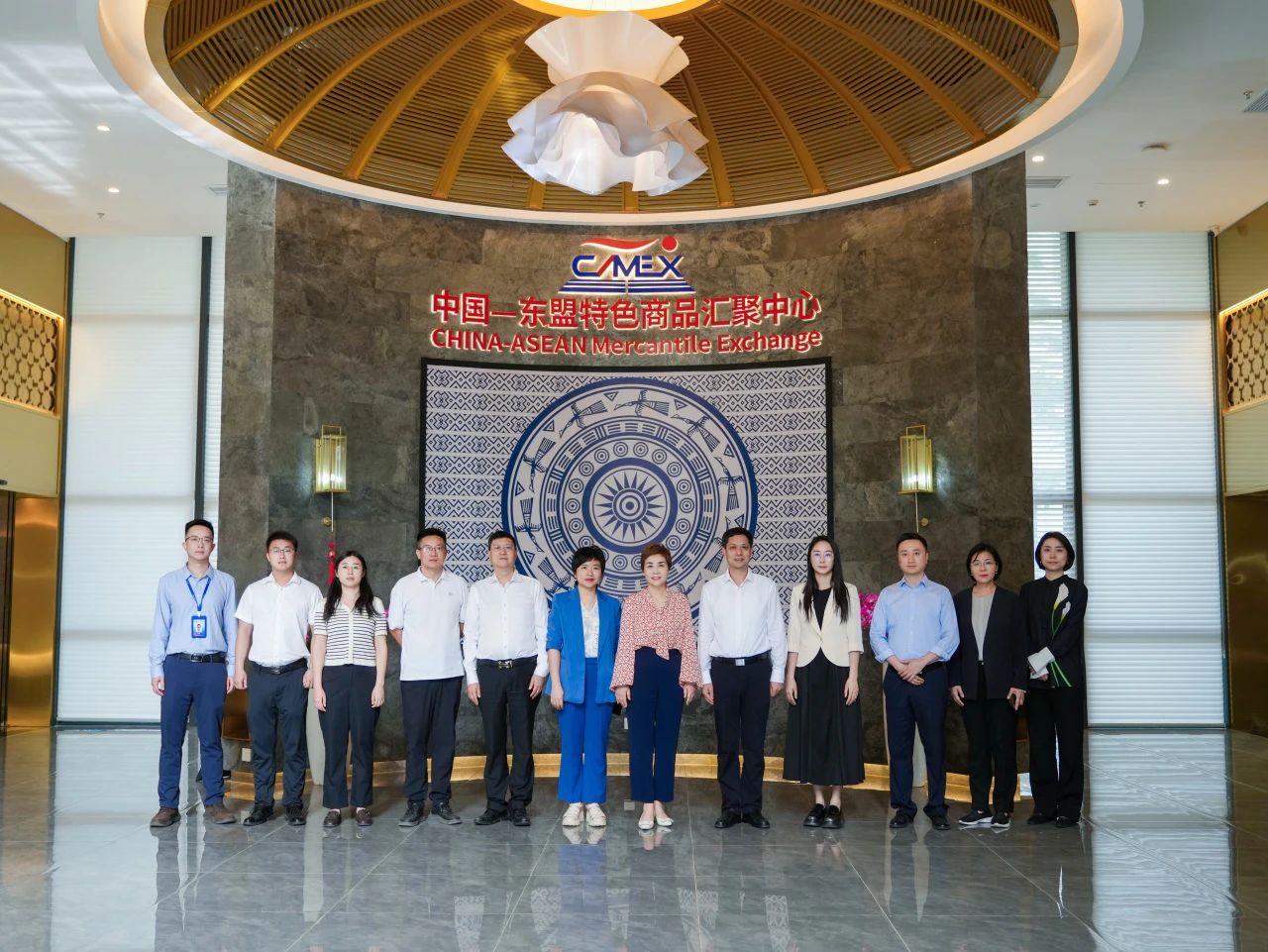 2025年4月16日,重慶市貿促會(huì )會(huì )長(cháng)鄧琳一行在廣西貿促會(huì )副會(huì )長(cháng)劉樹(shù)義的陪同下到中國—東盟特色商品匯聚中心(簡(jiǎn)稱(chēng)“匯聚中心”)參觀(guān)調研并進(jìn)行座談交流。中國—東盟特色商品匯聚中心副總經(jīng)理盧春梅熱情接待了調研組。