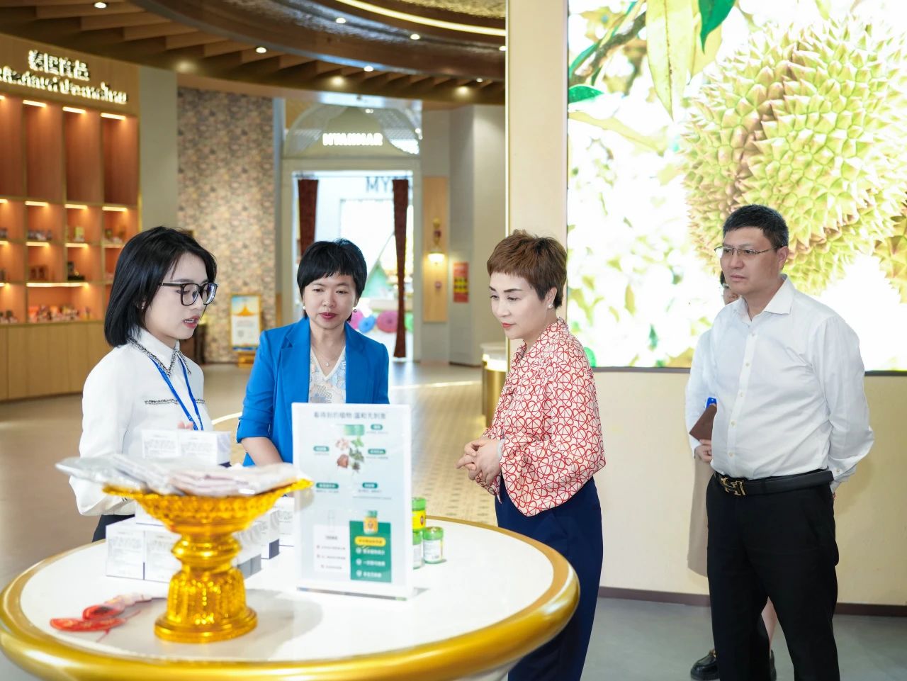 在匯聚中心參觀(guān)各主題展館的過(guò)程中,調研組詳細了解項目如何通過(guò)以“物”引“流”、以“物”促“流”的方式,搭建中國與東盟、RCEP其他區域國家乃至“一帶一路”沿線(xiàn)重要國家經(jīng)貿往來(lái)線(xiàn)上線(xiàn)下B2B、B2C一站式首選平臺,成為外國商家進(jìn)入中國市場(chǎng)的首站,以及中國商家拓展海外市場(chǎng)的窗口。