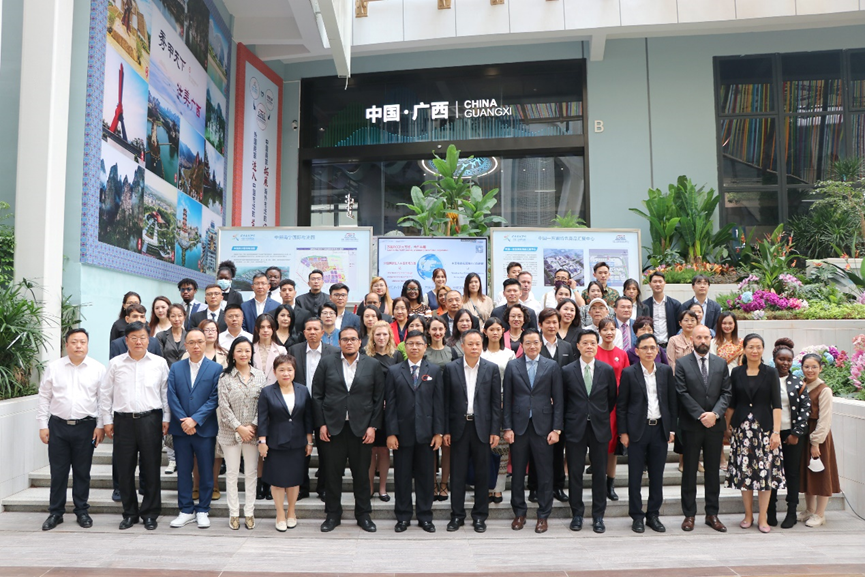 2022年10月16日至22日,中國共產(chǎn)黨第二十次全國代表大會(huì )勝利召開(kāi)。為宣講大會(huì )的劃時(shí)代意義、重大成果和深遠影響,同時(shí)增進(jìn)各國駐南寧總領(lǐng)事館官員、外籍專(zhuān)家、留學(xué)生、港澳人士代表對東盟國家投資企業(yè)及在桂重點(diǎn)項目高質(zhì)量發(fā)展情況的了解,廣西壯族自治區外事辦公室(以下簡(jiǎn)稱(chēng)“自治區外事辦”)和廣西南寧市外事辦公室(以下簡(jiǎn)稱(chēng)“南寧市外事辦”)于11月18日共同組織自治區外事辦、南寧市委、南寧市外事辦、東盟國家駐南寧總領(lǐng)事館、港澳及僑胞代表等一行約90人到中國—東盟特色商品匯聚中心(以下簡(jiǎn)稱(chēng)“匯聚中心”)考察。廣西新中產(chǎn)業(yè)投資有限公司/中國—東盟特色商品匯聚中心董事長(cháng)趙海燕會(huì )見(jiàn)了考察團一行。廣西新中產(chǎn)業(yè)投資有限公司/中國—東盟特色商品匯聚中心總經(jīng)理施國維陪同考察。