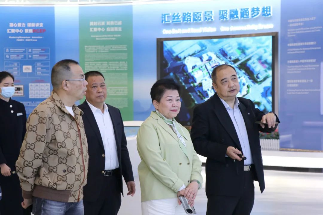 王琳達會(huì )長(cháng)介紹,廣西是全國重點(diǎn)僑鄉,有700多萬(wàn)桂籍僑胞廣泛分布在以東盟為主的“一帶一路”國家和地區,他們懷有愛(ài)國愛(ài)鄉的深厚感情,是參與“一帶一路”和廣西經(jīng)濟社會(huì )建設的重要力量。廣西僑商會(huì )自成立以來(lái),廣泛凝聚僑智、發(fā)揮僑力,在促進(jìn)中外友好等方面發(fā)揮了積極的作用。她表示,通過(guò)實(shí)地考察與交流,對中新物流園與匯聚中心的整體規劃、項目理念、運營(yíng)方式等有了更深的了解。強調匯聚中心有效搭建了中國與東盟經(jīng)貿往來(lái)與文化交流的平臺,為包括僑商、僑企在內的廣大商家到桂投資發(fā)展提供了便利。未來(lái)雙方要加強溝通對接,發(fā)揮各自?xún)?yōu)勢,整合各類(lèi)資源,開(kāi)展全方位、多層次合作,攜手助推與東盟國家的經(jīng)貿融合及快速發(fā)展。